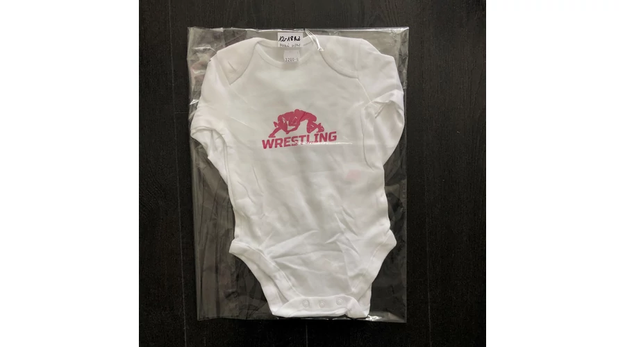Baba-body, pamut fehér - 12-18 hó - Összekapaszkodós mintával - Neon rózsaszín - Hosszú ujjas