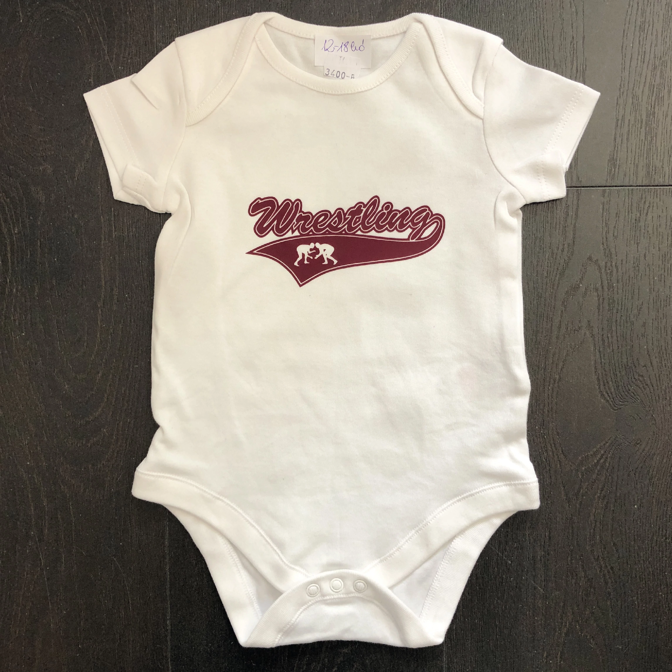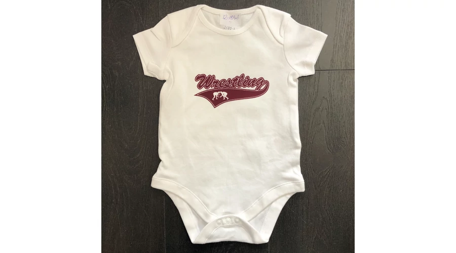 Baba-body, pamut fehér - 12-18 hó - Wrestling szalagos birkózókkal mintával - Bordó - Rövid ujjas