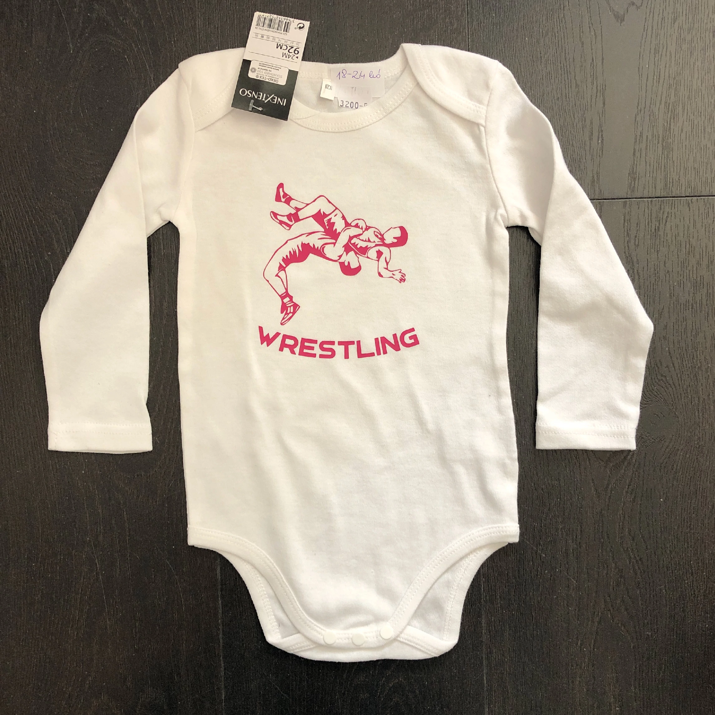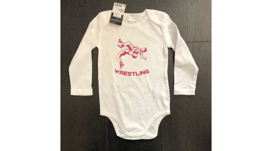 Baba-body, pamut fehér - 18-24 hó - Új dobós mintával - Rózsaszín - Hosszú ujjas