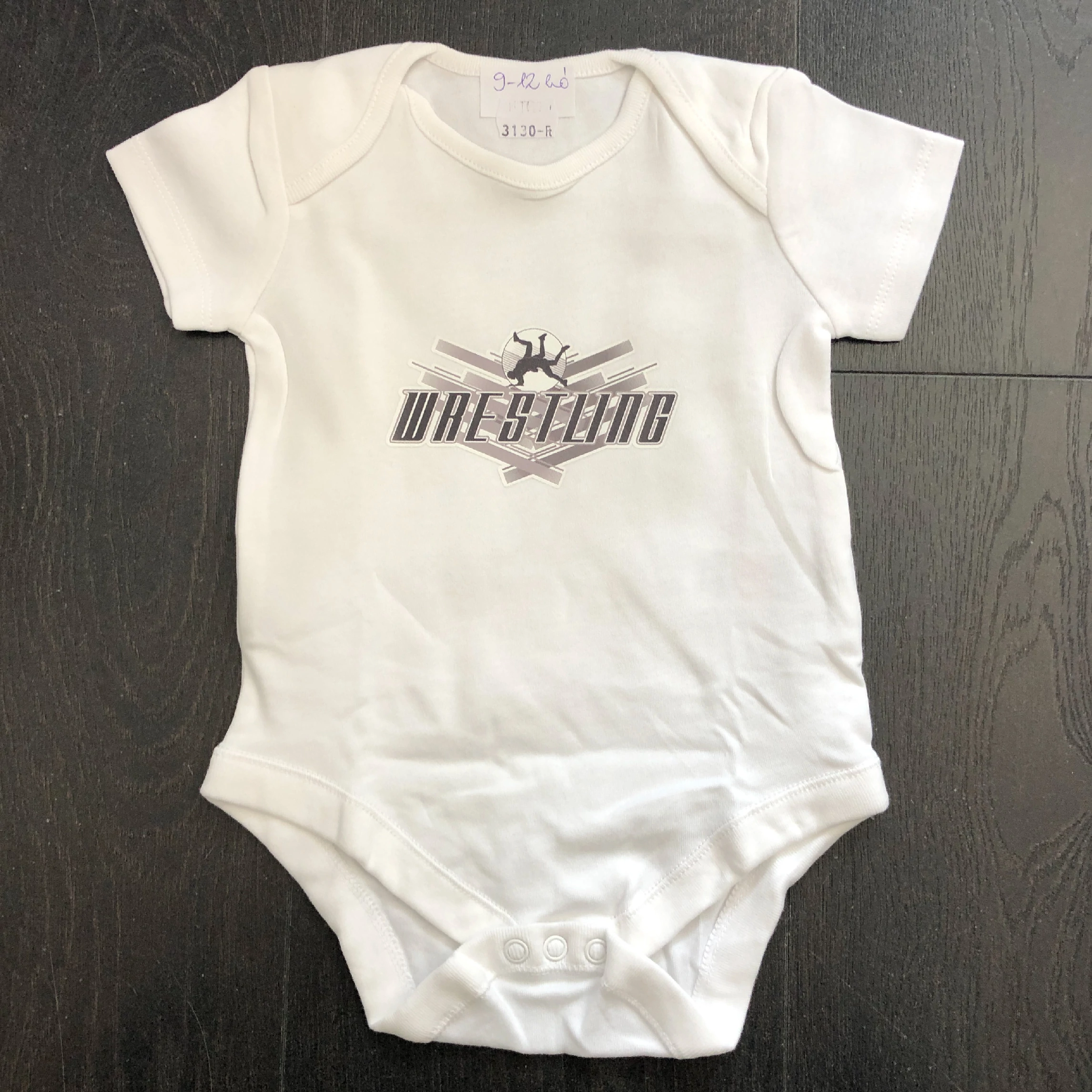 Baba-body, pamut fehér - 9-12 hó - Wrestling sok csíkos mintával - Színes - Rövid ujjas