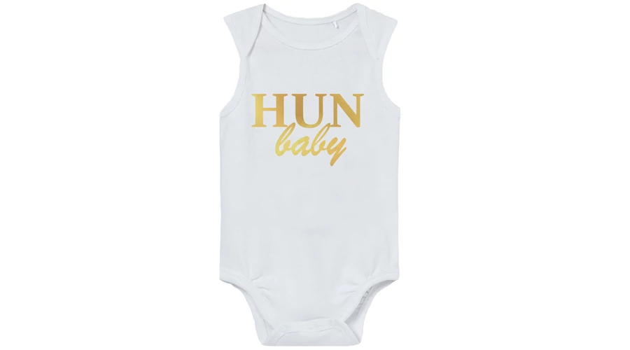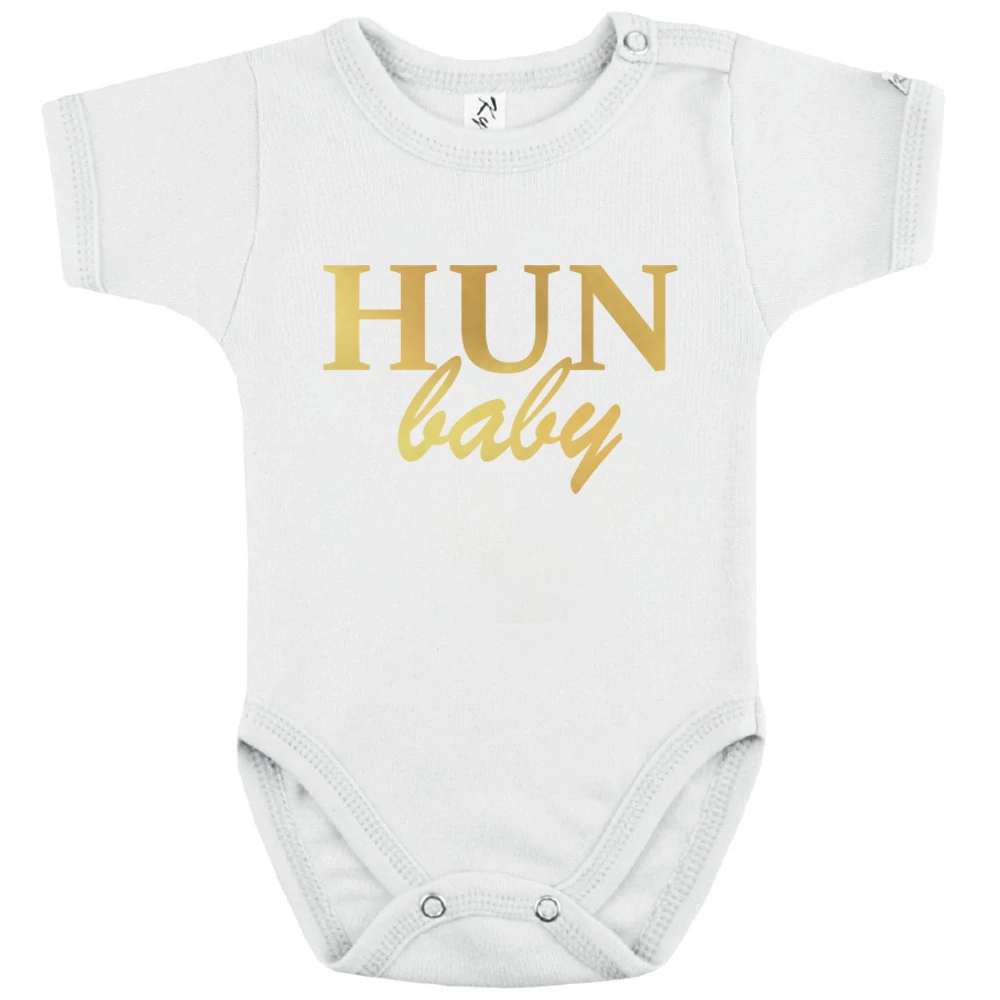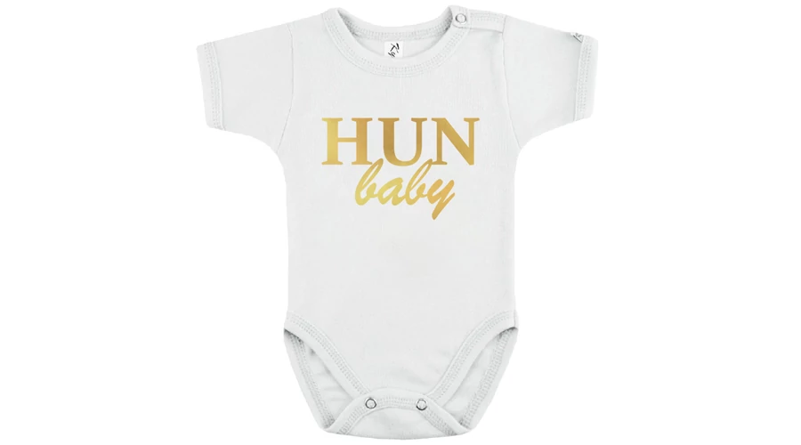 Baba-body, pamut fehér - HUN Baby - arany mintával - KÜLÖNBÖZŐ UJJHOSSZÚSÁGBAN