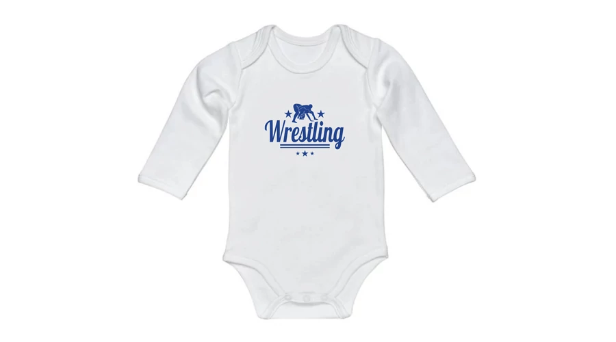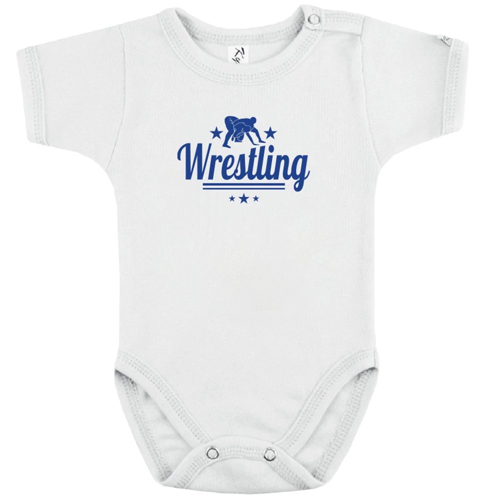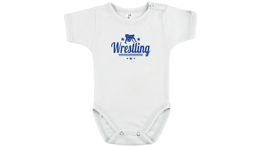 Baba-body, pamut fehér - Wrestling 2 csíkos csillagos - kék mintával - KÜLÖNBÖZŐ UJJHOSSZÚSÁGBAN
