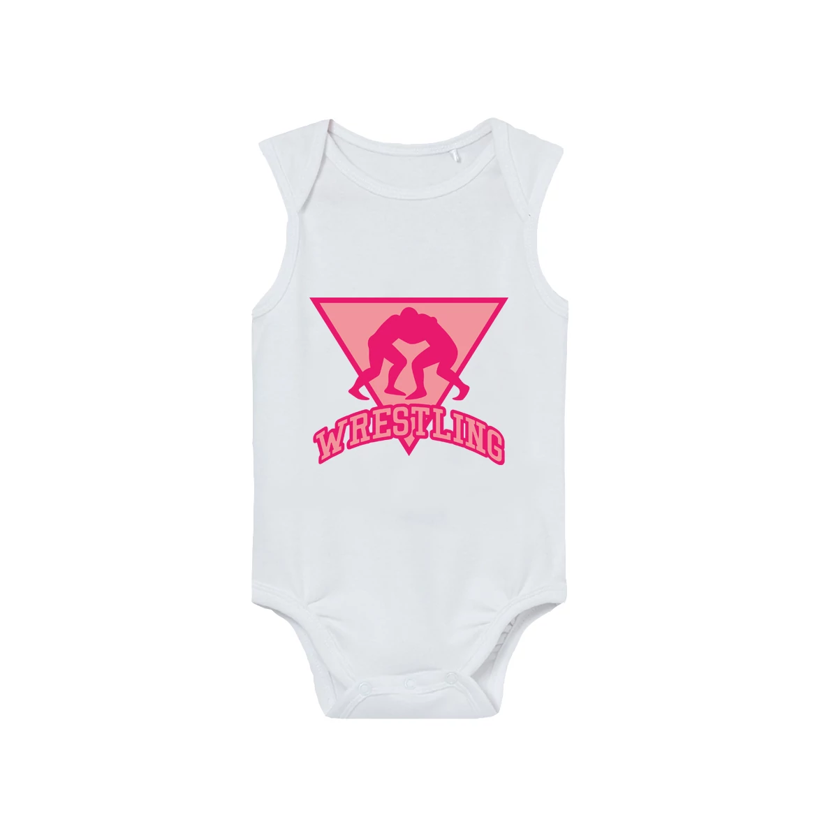 Baba-body, ujjatlan, pamut fehér - háromszög minta rózsaszín