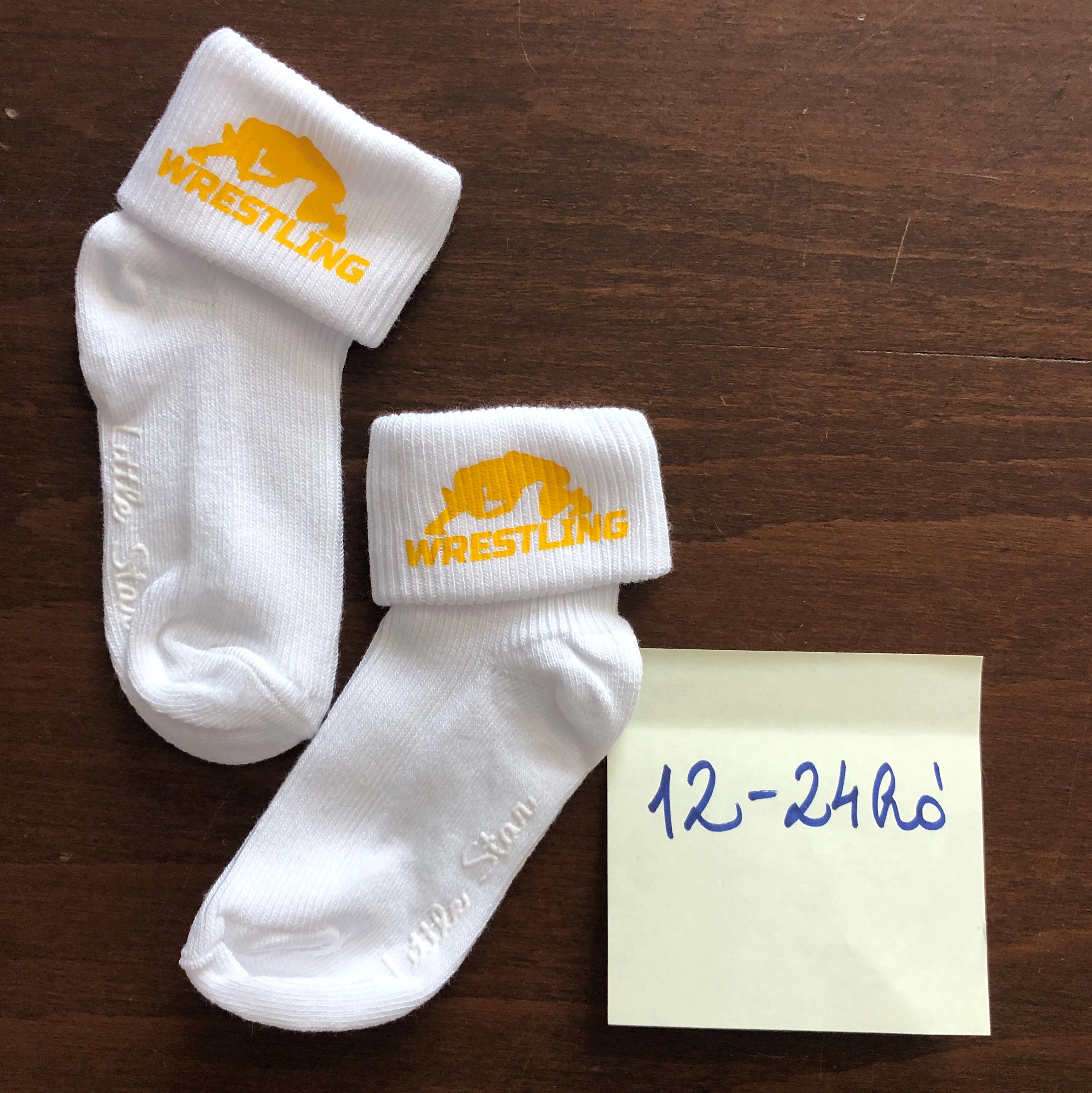 Baba zokni - sárga összekapaszkodós mintával - fehér zoknin (12-24hó)