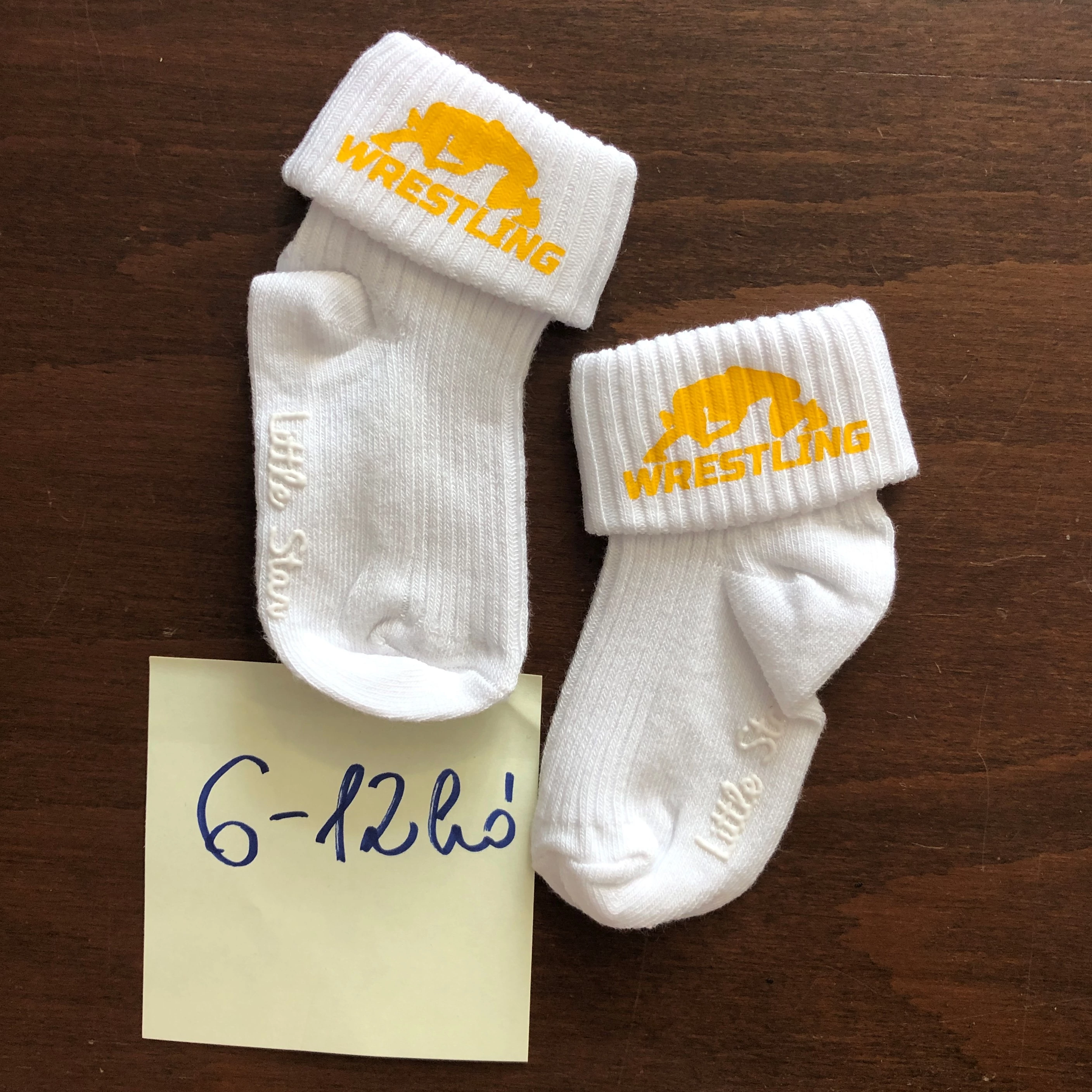 Baba zokni - sárga összekapaszkodós mintával - fehér zoknin (6-12hó)