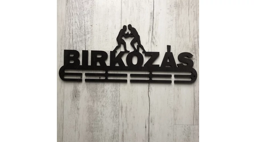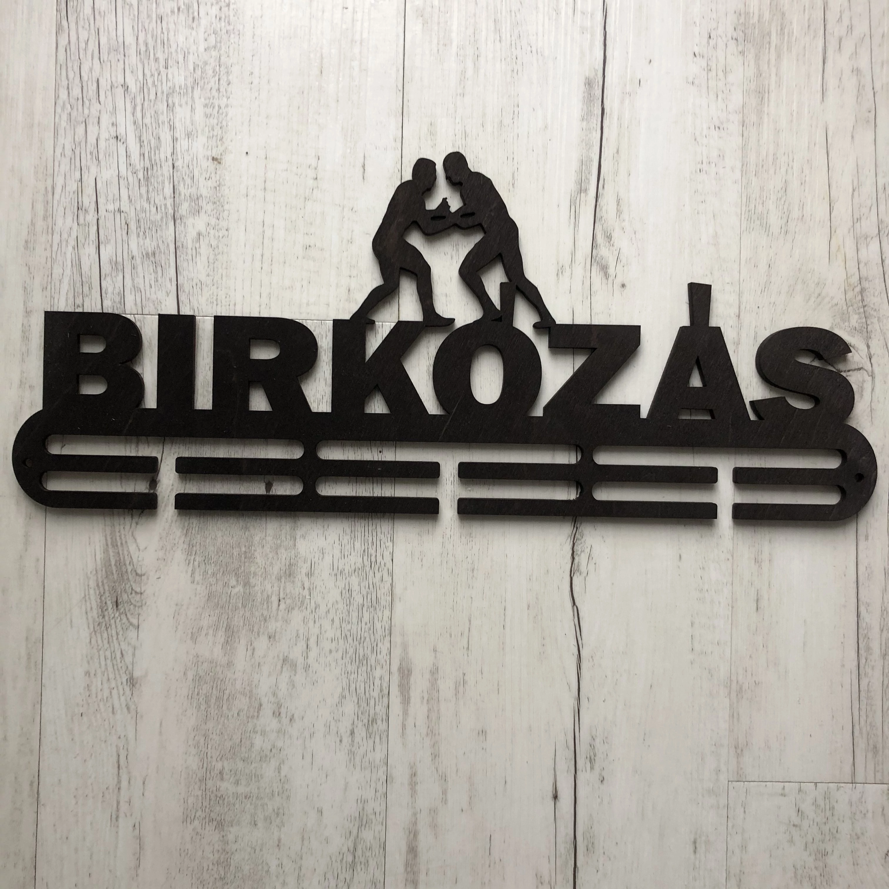 Fali Éremakasztó Fából - BIRKÓZÁS - 2 soros sötétbarna (38x16cm)