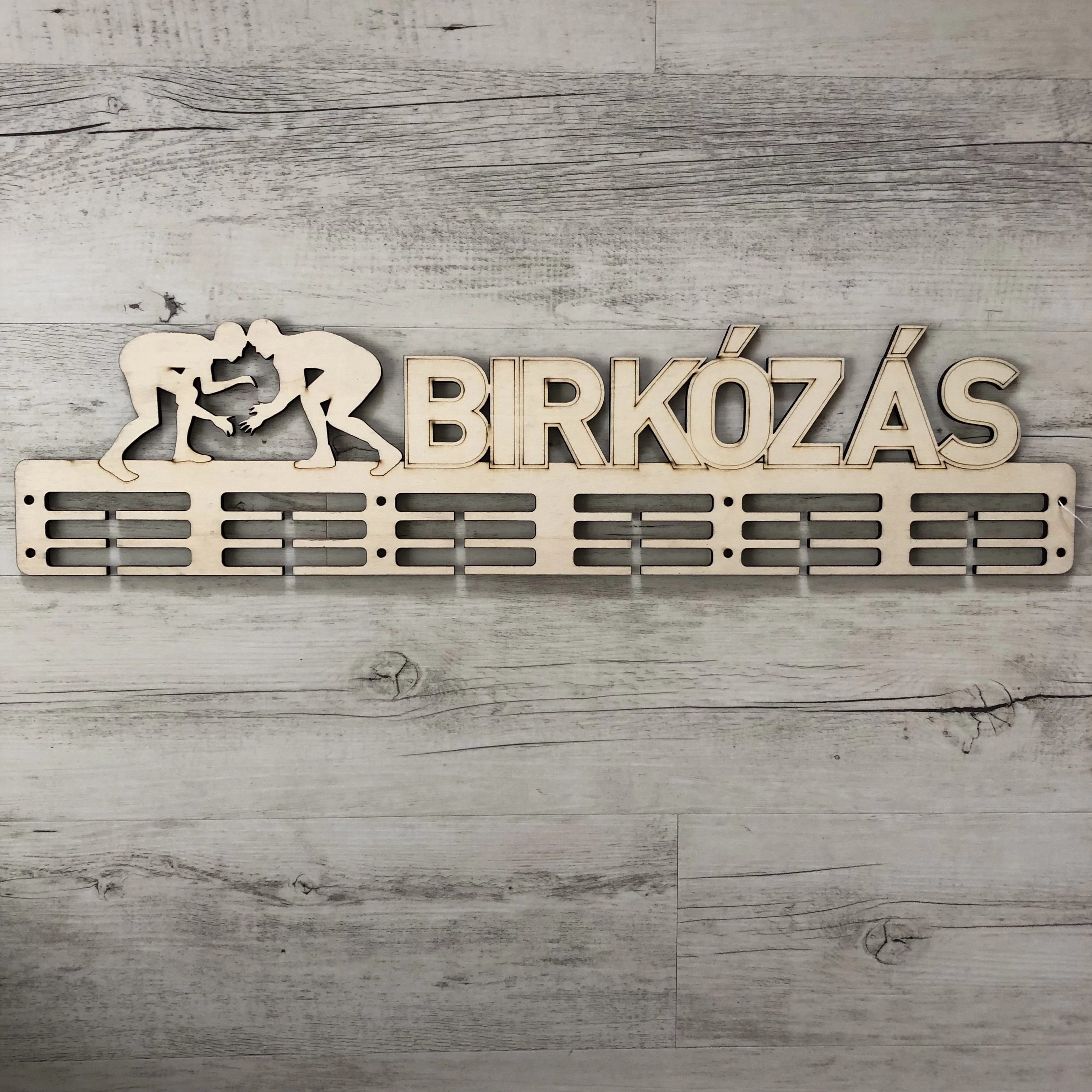 Fali Éremakasztó Fából - BIRKÓZÁS - 3 soros, bézs (65x16cm)