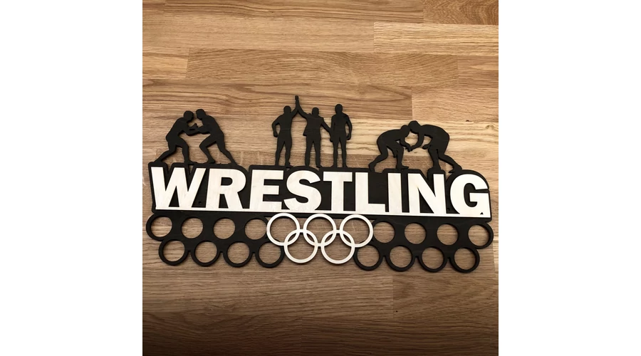 Fali Éremakasztó Fából - WRESTLING karikás (sötétbarna alapon, bézs) 46x24 cm