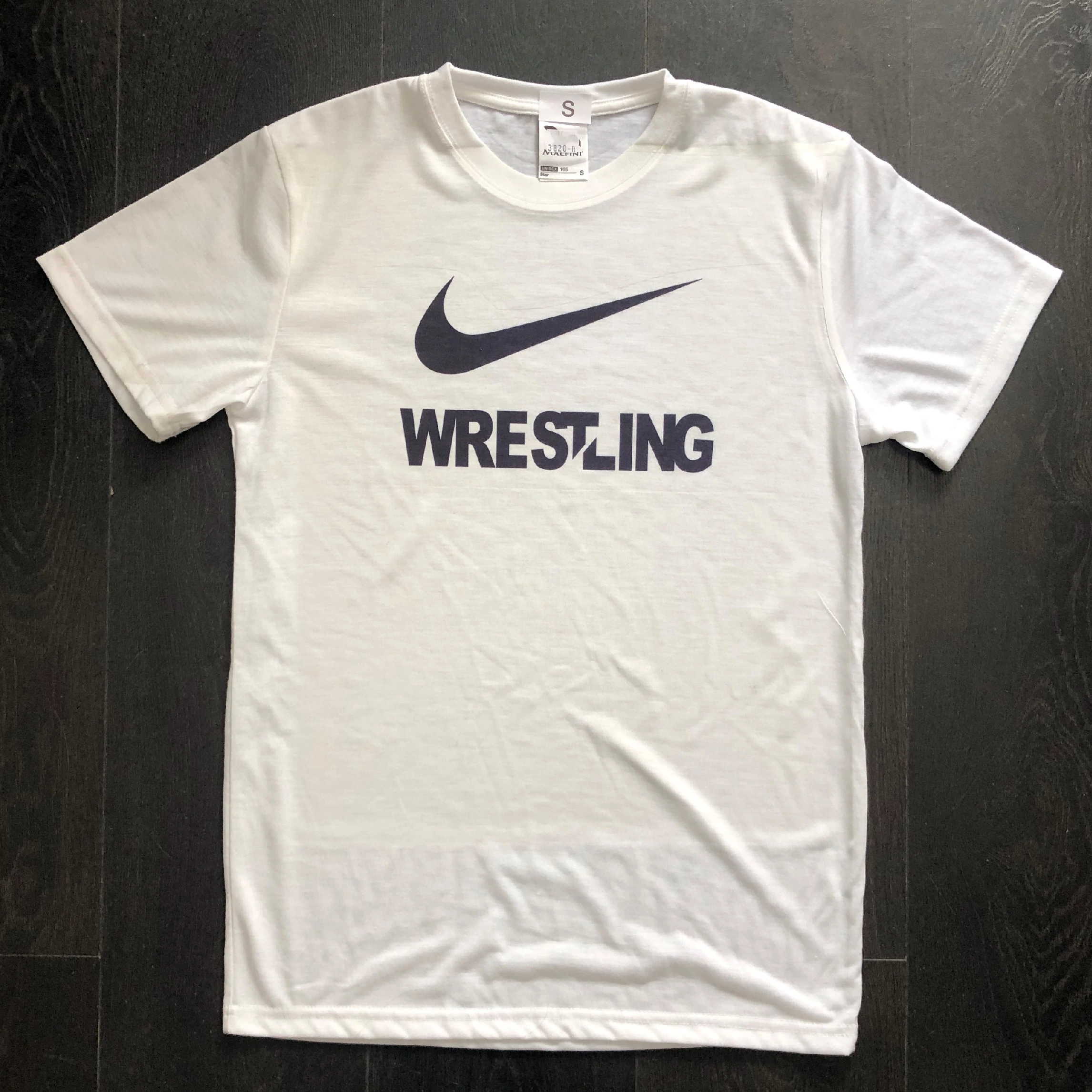 Férfi fehér technikai póló - Wrestlingnike mintával