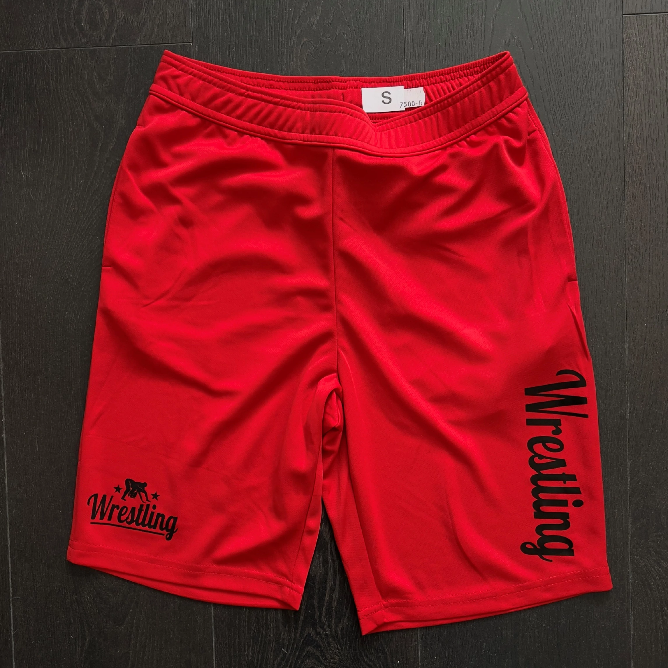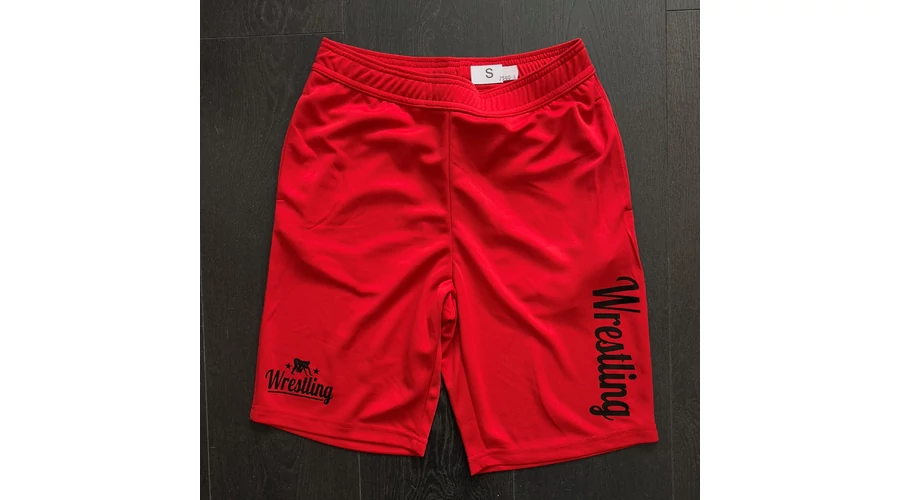 Férfi technikai piros short - Wrestling 2 csíkos mintával-S