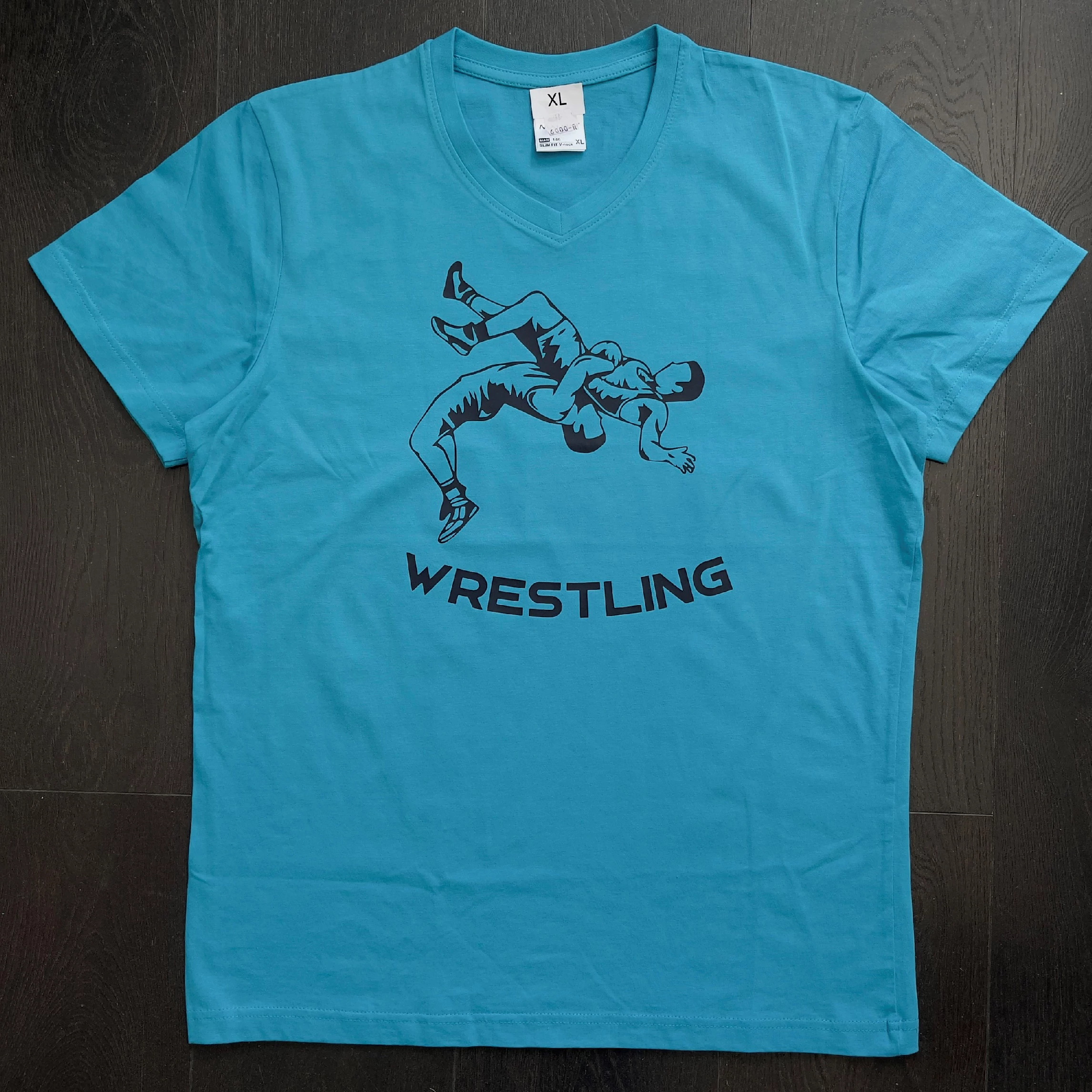 Férfi V nyakú türkiz póló - Új dobós mintával