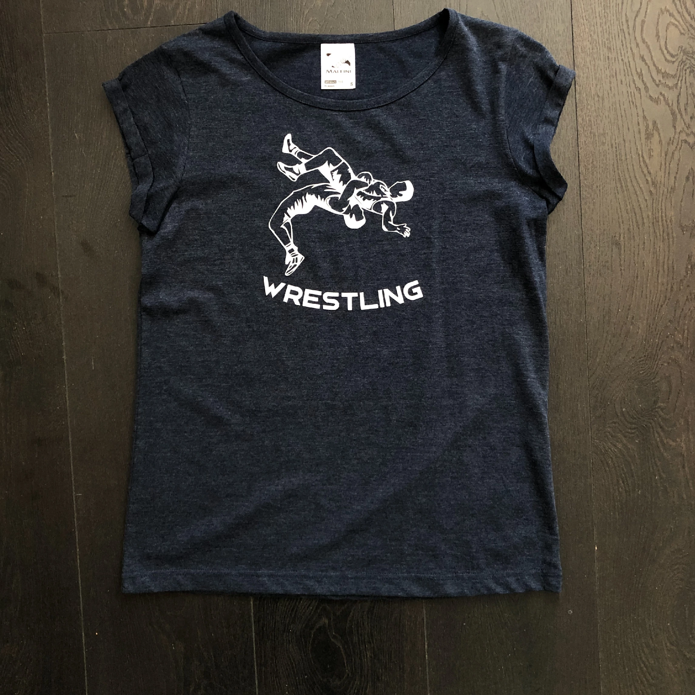 Női sötétkék melírozott póló - Új dobós fehér mintával-S