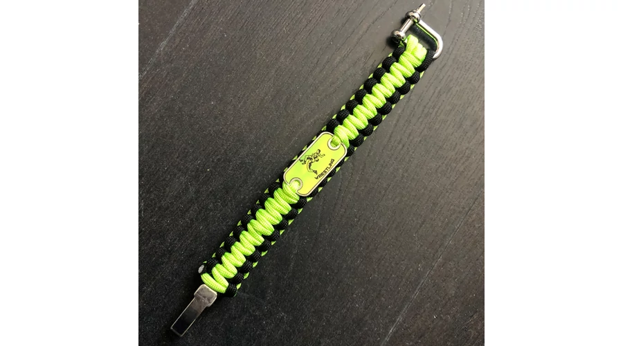 Paracord karkötő - Neonzöld, fekete - Új dobós mintával