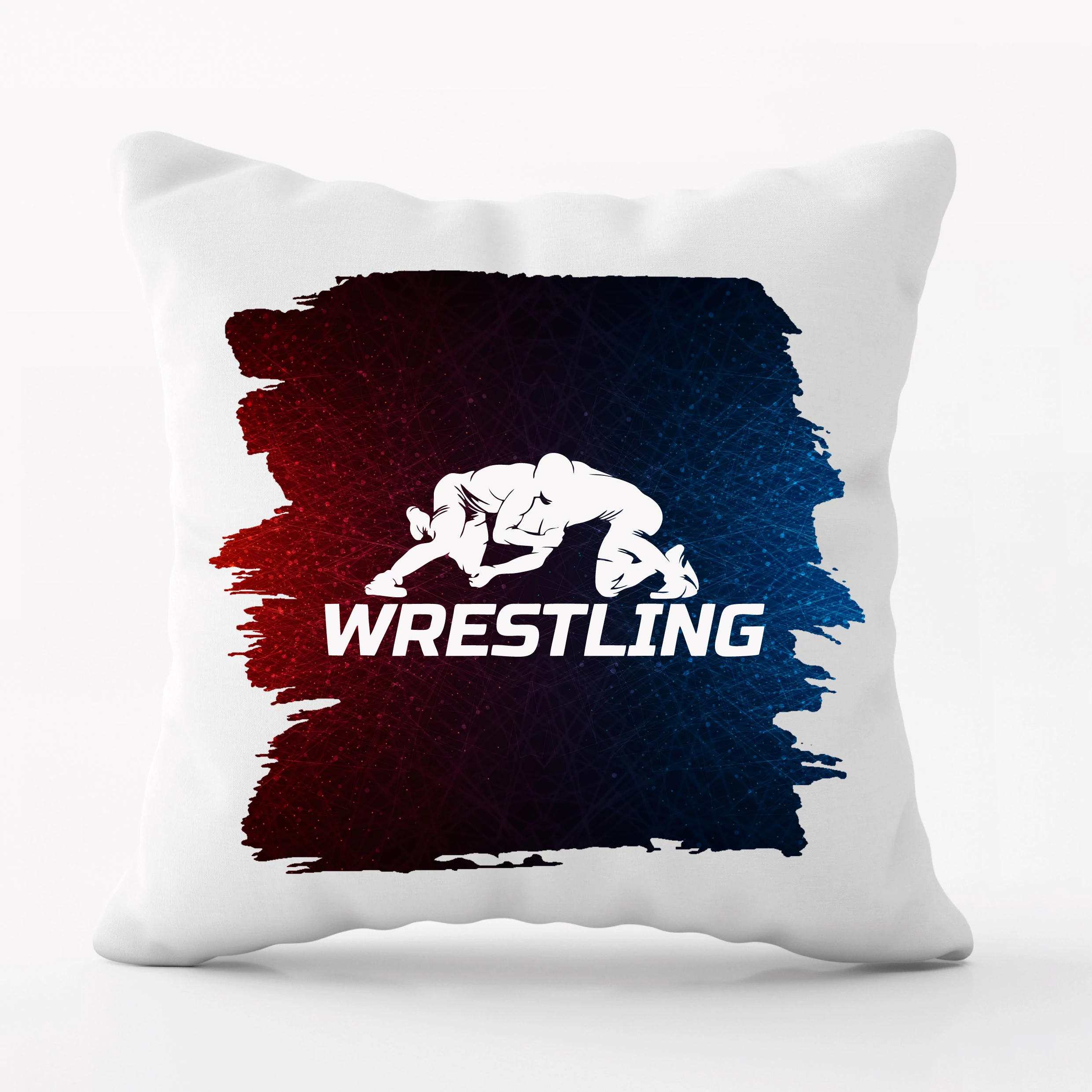 Párna - Fehér összekapaszkodós mintával, piros-kék háttérrel