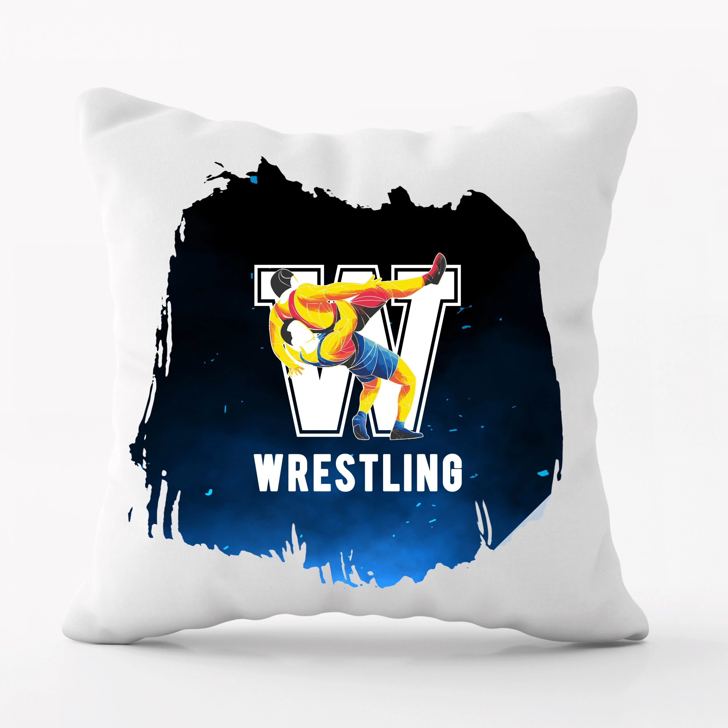 Párna - Színes Birkózó W mintával, kék háttérrel